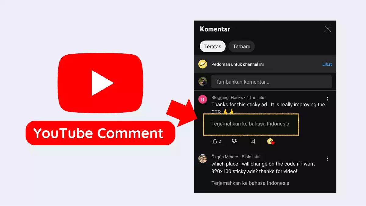 Setelah opsi terjemahan muncul di bawah komentar, klik opsi “Translate” atau “Terjemahkan” untuk menerjemahkan komentar ke bahasa yang Anda pilih. YouTube akan secara otomatis menerjemahkan komentar tersebut ke bahasa yang Anda tentukan.